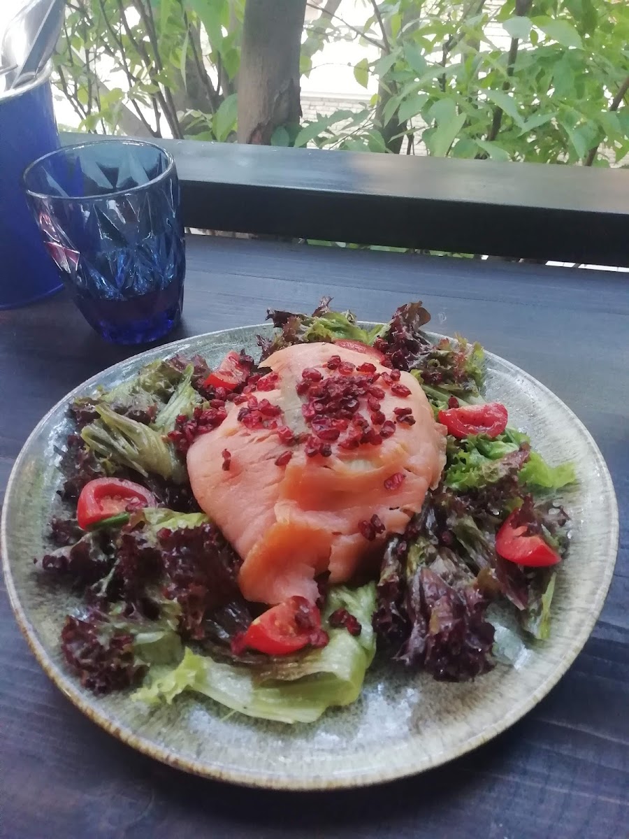 The café boasts a spacious and shaded garden, allowing guests to bask in the gentle Tbilisi breeze while enjoying their meals al fresco. The interior is fresh and modern, combining clean lines and thoughtful decor that creates a vibrant yet relaxed atmosphere. It’s an ideal spot for casual gatherings or quiet moments, with its inviting ambiance making it a perfect backdrop for socializing.